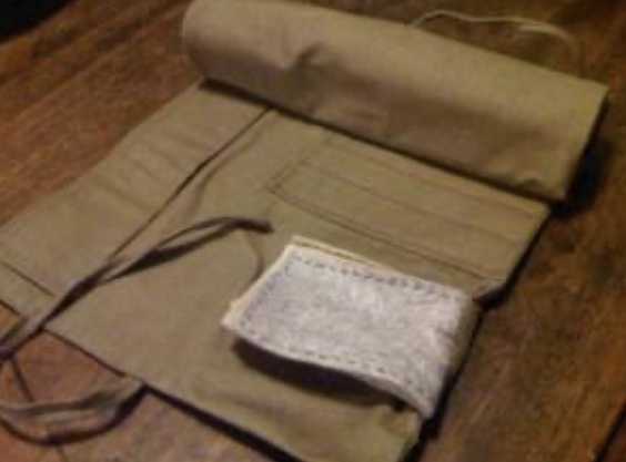 My husband has wielded a needle from time to time to repair a sail, so I had a go a making him a hussif, based very roughly on the one Scott and Royd stitched for themselves, suitable for sailing sewing needles, threads, twine and palm all in good order. It’s not a thing of beauty, but I’m hoping it’ll be useful.