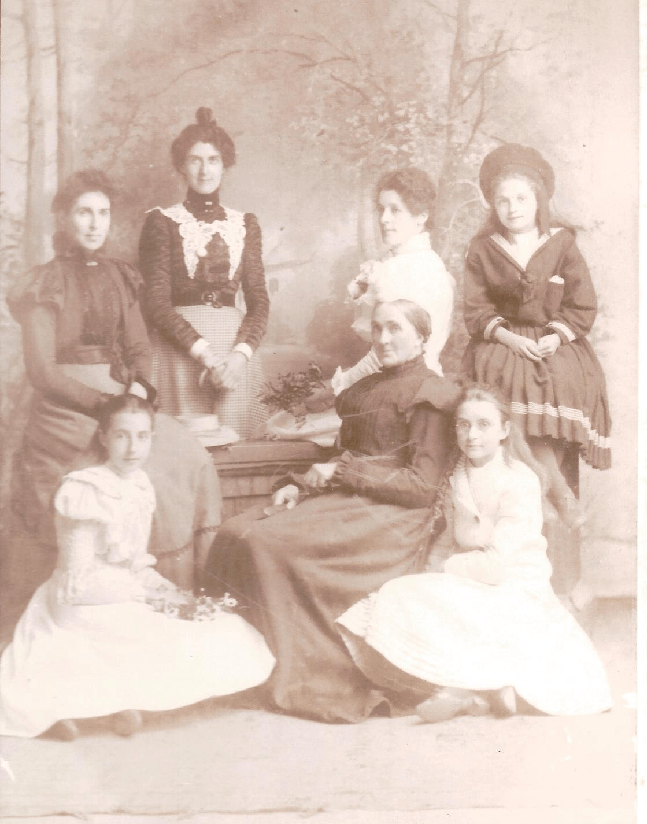 We think this photo show Jenny, seated bottom right of this photo, wearing glasses. The two other girls could be Rachel and Grace, her sisters.