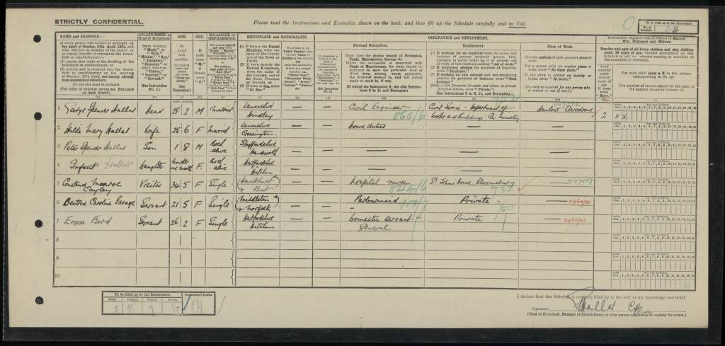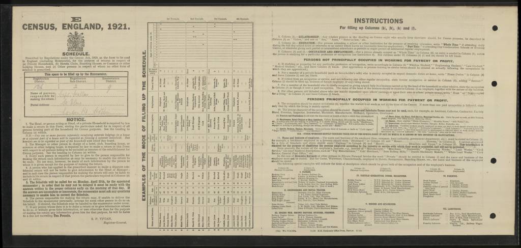 Mouse first enters the official records as ‘Infant’. A 3-week old baby on the 1921 Census. She was born on 29 May, and the census was taken on 21 June. It should have taken place in April that year, but had been postponed due to massive industrial unrest and strikes sweeping the country; if it hadn’t been delayed, she wouldn’t have been on it – but as it is we have little snapshot of her first few weeks.